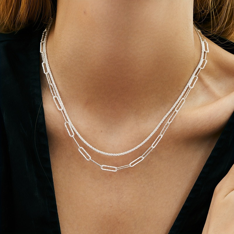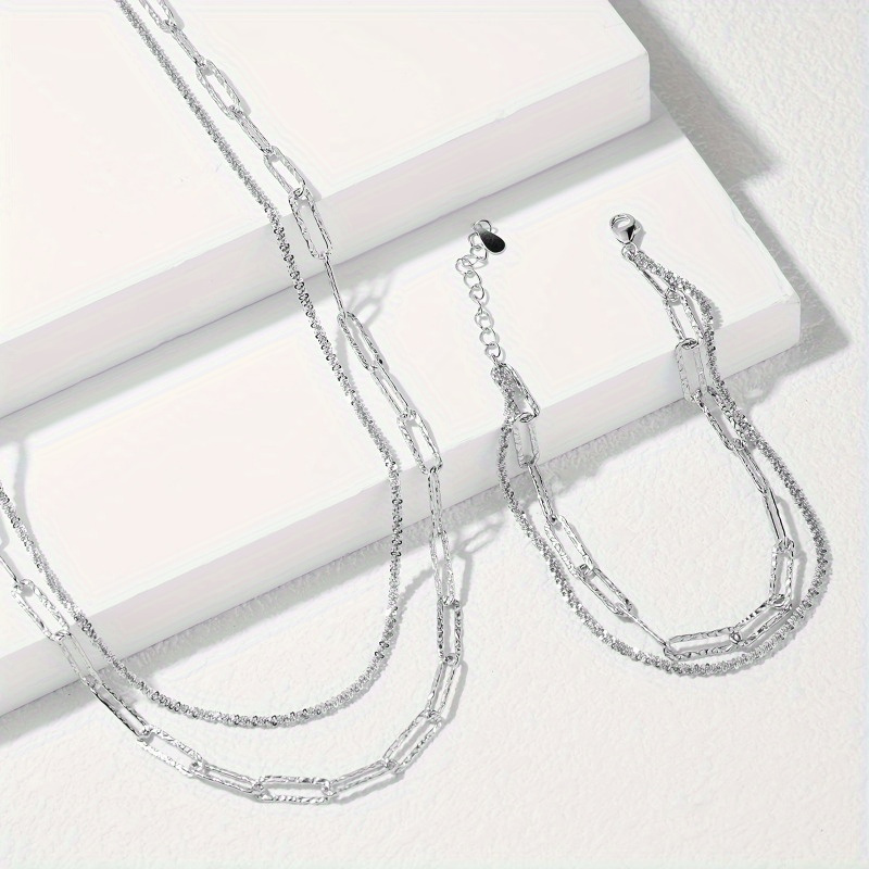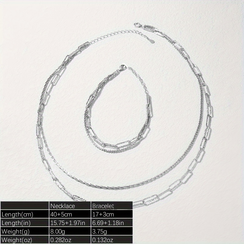 Ajoutez une touche d'élégance à votre tenue avec cette élégante parure de bijoux en argent sterling S925 véritable. Elle se compose d'un collier finement travaillé et d'un bracelet assorti au design moderne et superposé, parfaits au quotidien, pour les grandes occasions ou les fêtes.